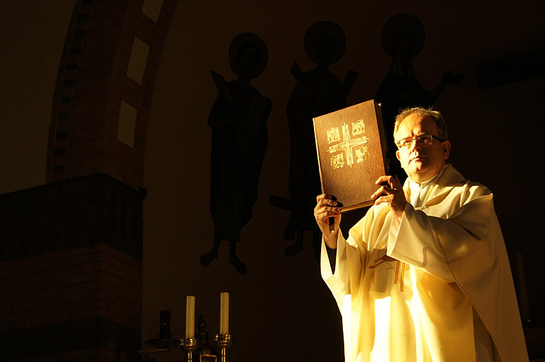 “Voor het onderdeel Portret zouden we een serie foto’s maken rondom het thema ‘Helden en Idolen’. Ik hierbij gekozen voor het Priesterschap als beroep. Mijn oom is priester en de laatste tijd lijken mensen dat beroep steeds vaker als niet meer noodzakelijk te zien, terwijl het wel een beroep is waarvoor je heel wat opoffert en waarbij heel je leven in het teken van het priesterschap staat en waar je dus best tegenop mag kijken. De eerste categorie moesten we ons model ‘heroïsch’ afbeelden. Bij de tweede zouden we foto’s maken voor in een vakblad. De derde voor in een magazine en de laatste categorie mocht je zelf invullen waarbij ik geprobeerd heb het leven achter het priesterschap te laten zien.”